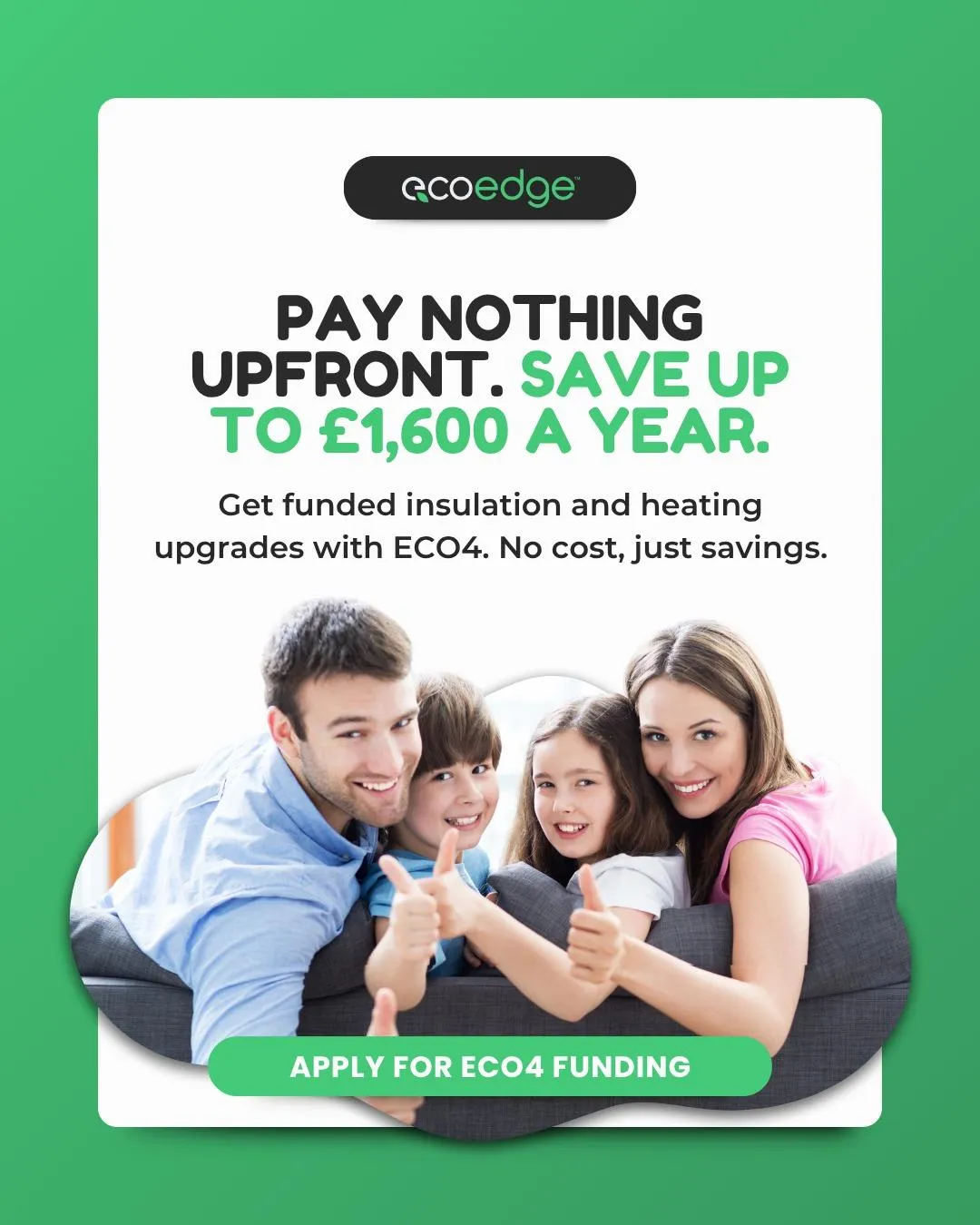If your home is eligible, government funding covers everything with no repayment and zero upfront cost. Save thousands. Act now while ECO4 funds last!